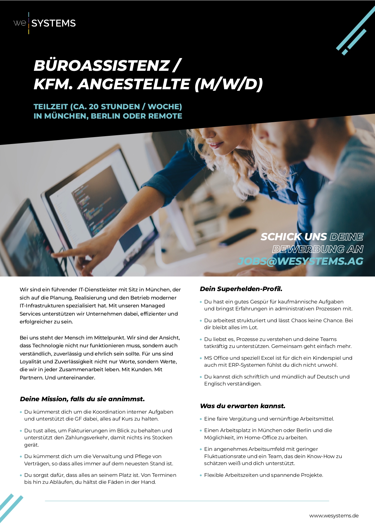 Senden Sie uns einfach Ihre Bewerbung an jobs@wesystems.ag.